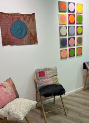 Die Serie PLANETEN ist inspiriert durch die Arbeit der Architektin und Aktivistin Anna Heringer und ihr textiles Projekt Dipdii Textiles. Die Bilder sind in Öl auf Leinwand/Canvas gemalt. Der Erlös aus Verkäufen kommt Dipdii Textiles zugute.
